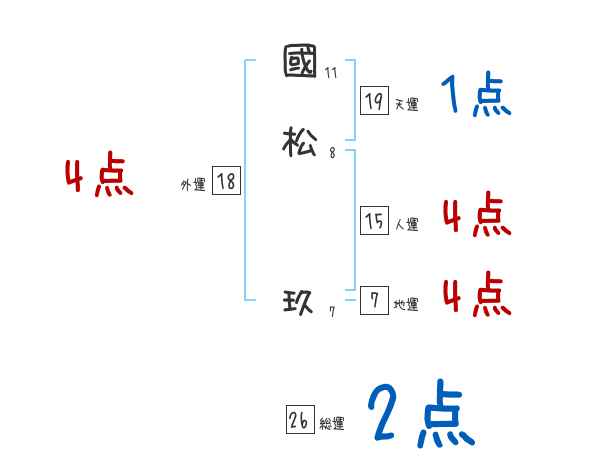 國松玖さんの画数の鑑定結果