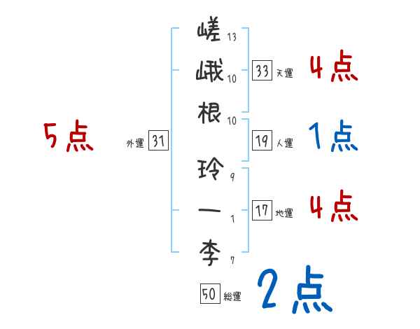 嵯峨根玲一李さんの画数の鑑定結果