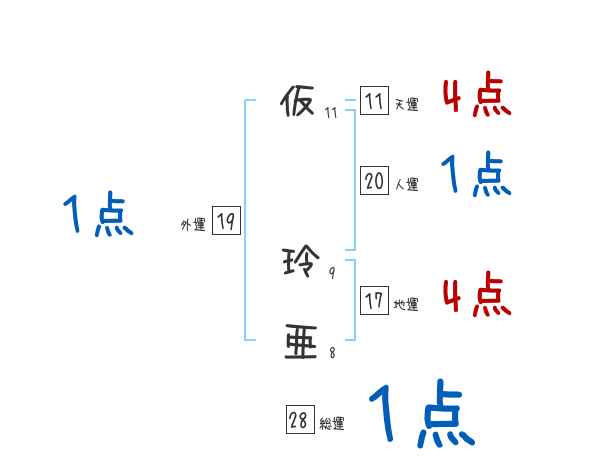 仮玲亜さんの画数の鑑定結果