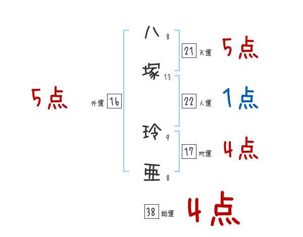 八塚玲亜さんの画数の鑑定結果