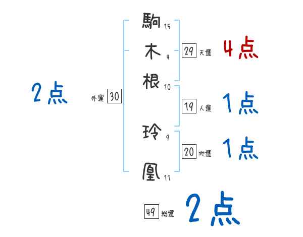 天運![]() | 駒木根玲凰さんの天運は29画の4つ星!完全主義で才能がある。厳格な心の持ち主。 家系が持つ宿命的な運勢を表します。祖先から受け継いだ苗字ですので自分の力が及びません。家柄を象徴します。 |