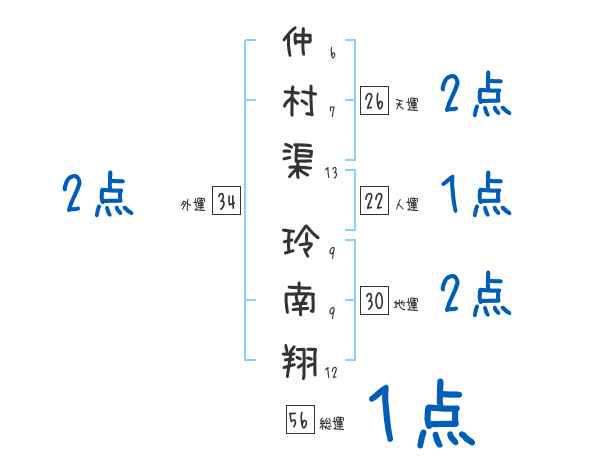 家系が持つ宿命的な運勢を表します。祖先から受け継いだ苗字ですので自分の力が及びません。家柄を象徴します。