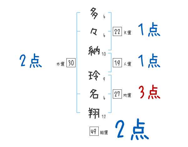 多々納玲名翔さんの画数の鑑定結果