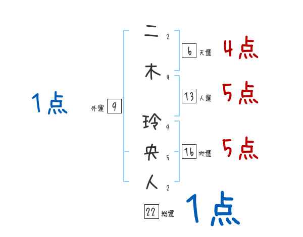 二木玲央人さんの画数の鑑定結果