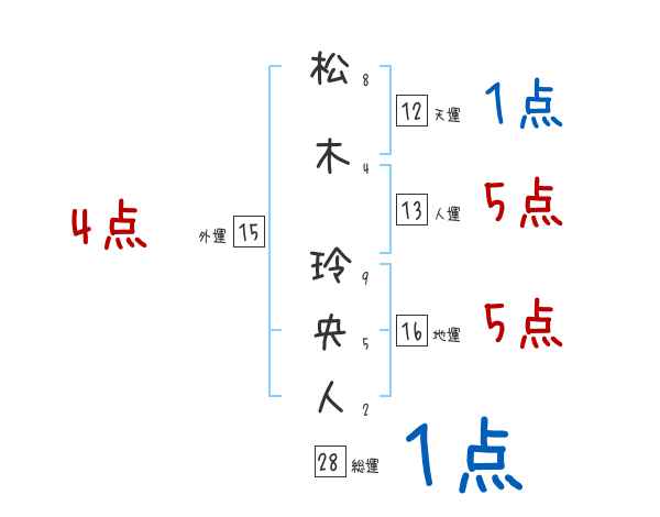 外運![]() | 松木玲央人さんの外運は15画の4つ星!人徳があり出世する。順調に物事を進め円満な人生。 生活面を象徴する運勢です。外部から受ける影響力を表し、結婚運、家庭運や職場、環境への順応性を表します。 |