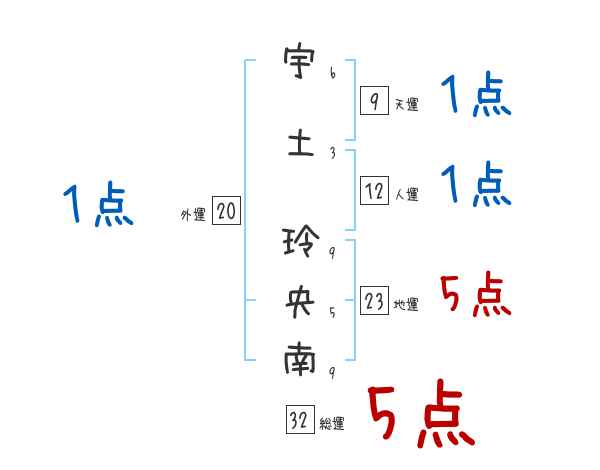 宇土玲央南さんの画数の鑑定結果