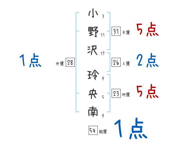 小野沢玲央南さんの画数の鑑定結果