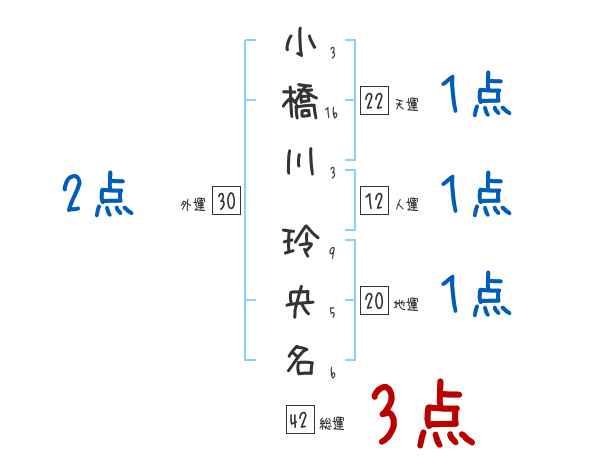 小橋川玲央名さんの画数の鑑定結果