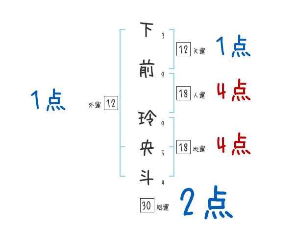 下前玲央斗さんの画数の鑑定結果