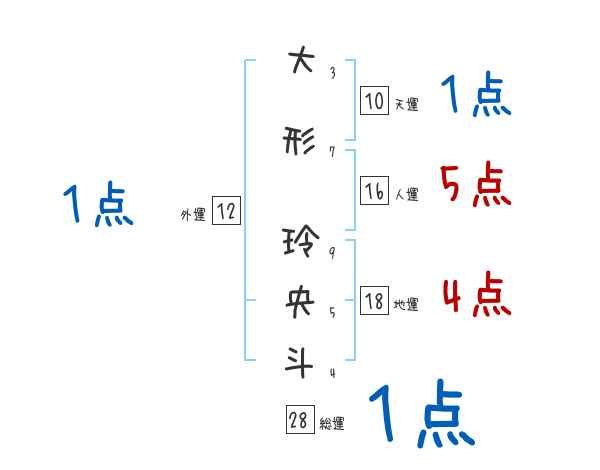 大形玲央斗さんの画数の鑑定結果