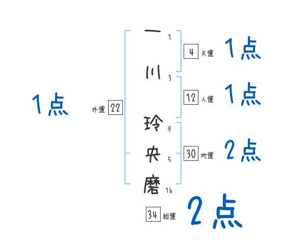 総運![]() | 一川玲央磨さんの総運は34画の2つ星!独創性に優れるが、自尊心が強く災難に注意しましょう。 あなたの人生を表す1番重要な運勢です。生涯を通じて影響する総合運となり、主に50歳以降の晩年期に影響を及ぼします。 |