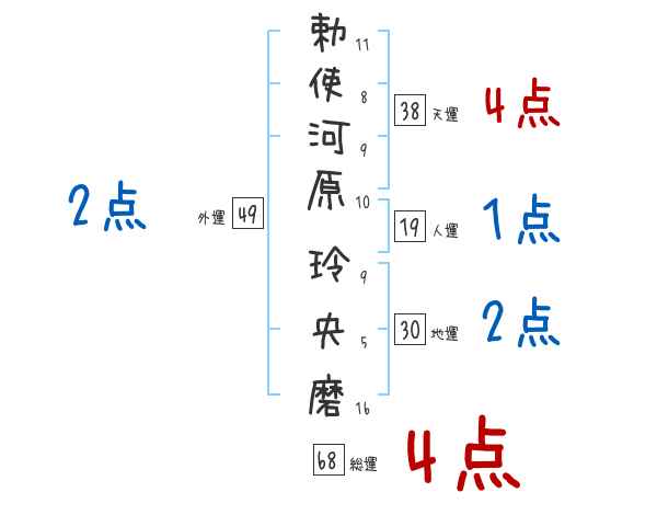 総運![]() | 勅使河原玲央磨さんの総運は68画の4つ星!潜在能力が高く集中力が高い。勤勉に励み発展する。 あなたの人生を表す1番重要な運勢です。生涯を通じて影響する総合運となり、主に50歳以降の晩年期に影響を及ぼします。 |
