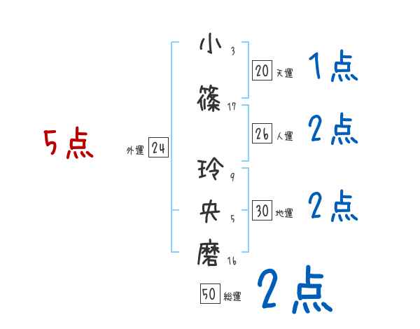 小篠玲央磨さんの画数の鑑定結果