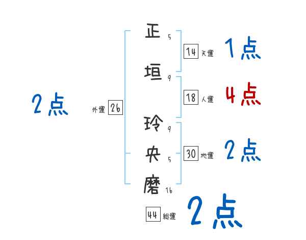 天運![]() | 正垣玲央磨さんの天運は14画の1つ星!人に対して優しいがストレスを溜め込みがち。人間関係のトラブルを避けるよう気をつけましょう。 家系が持つ宿命的な運勢を表します。祖先から受け継いだ苗字ですので自分の力が及びません。家柄を象徴します。 |