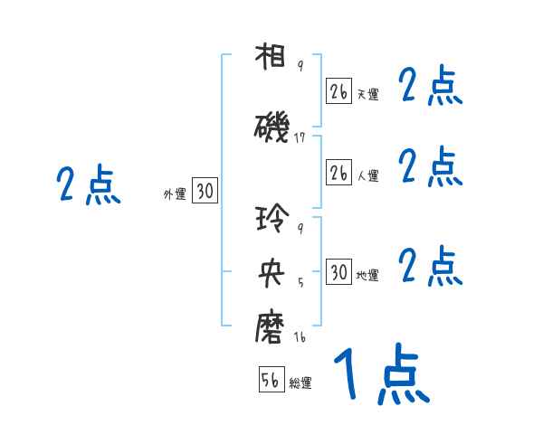 相磯玲央磨さんの画数の鑑定結果