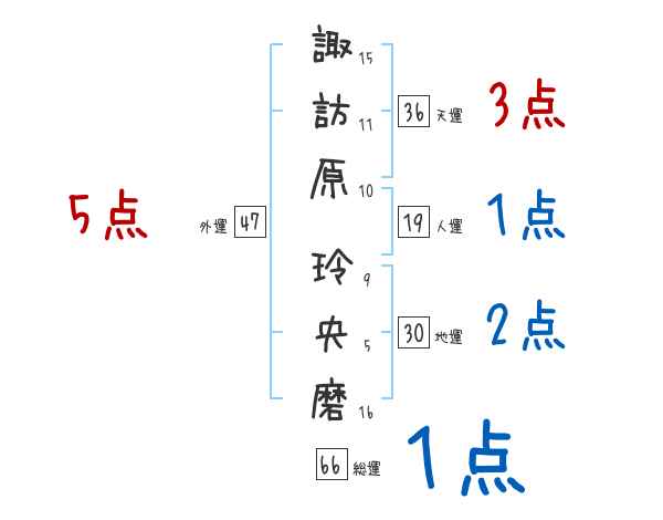 諏訪原玲央磨さんの画数の鑑定結果
