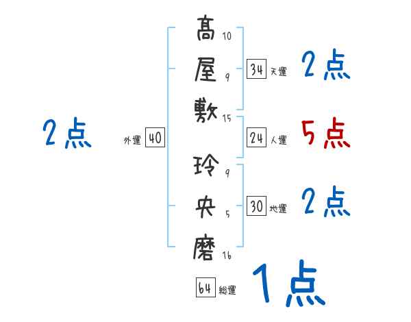 髙屋敷玲央磨さんの画数の鑑定結果