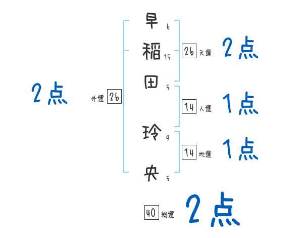 早稲田玲央さんの画数の鑑定結果