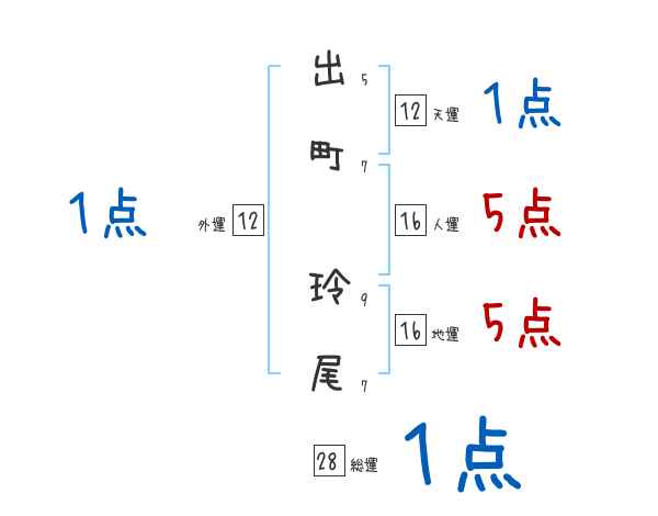 出町玲尾さんの画数の鑑定結果