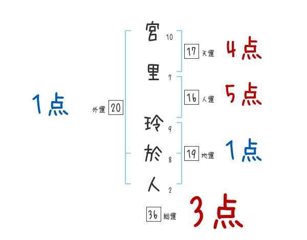 総運![]() | 宮里玲於人さんの総運は36画の3つ星!先見性が豊かです。多少神経質で苦労することも。 あなたの人生を表す1番重要な運勢です。生涯を通じて影響する総合運となり、主に50歳以降の晩年期に影響を及ぼします。 |