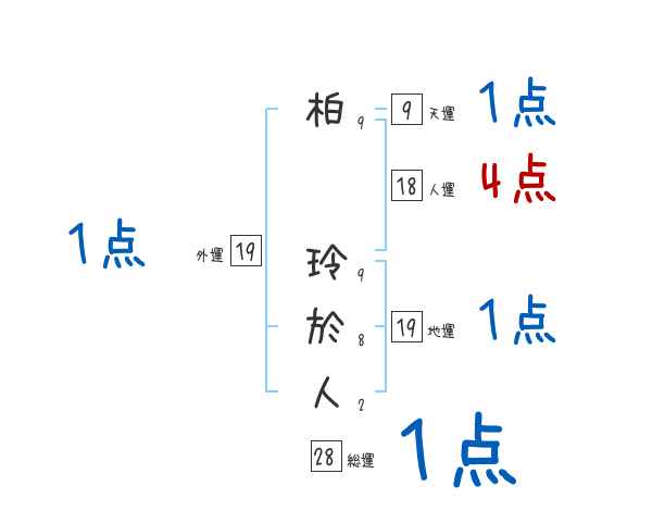 柏玲於人さんの画数の鑑定結果