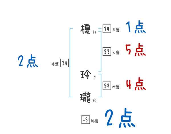 人運![]() | 榎玲瓏さんの人運は23画の5つ星!想像力に優れ活力がある。一代で成功し名誉を手に入れる。 性格や才能などを表す2番目に重要な運勢です。人間関係や協調性、社会的な成功に影響します。主に20歳から50歳ぐらいまでの中年期の運勢を表します。 |
