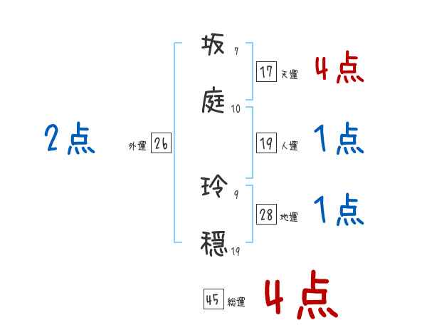坂庭玲穏さんの画数の鑑定結果
