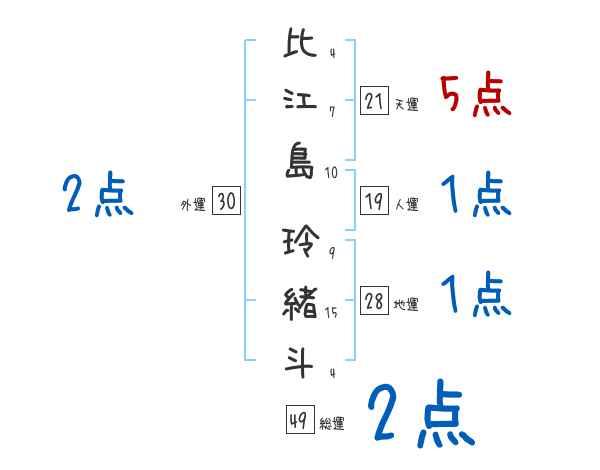 比江島玲緒斗さんの画数の鑑定結果