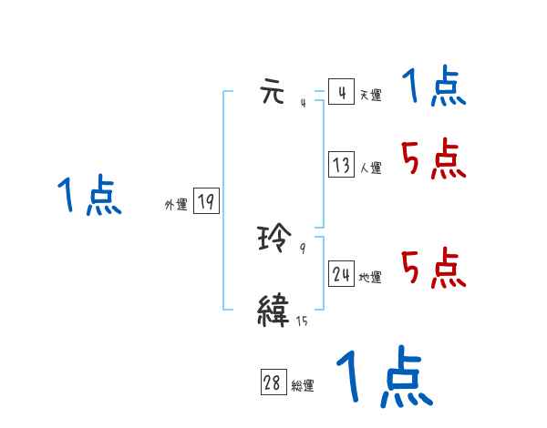 元玲緯さんの画数の鑑定結果