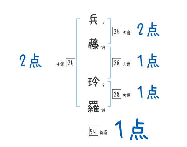兵藤玲羅さんの画数の鑑定結果