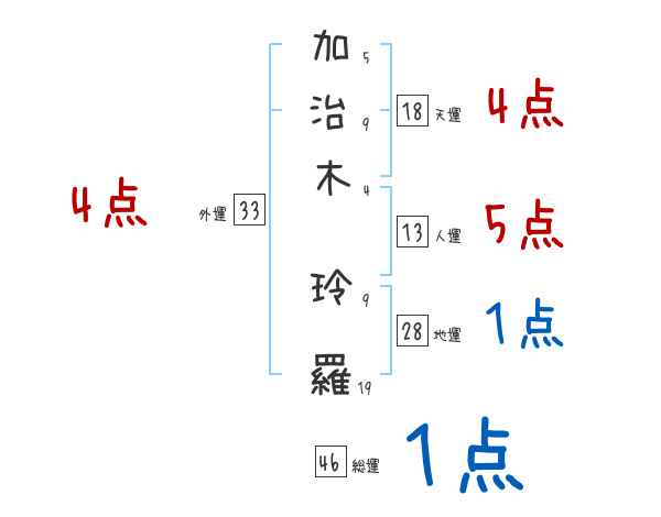 加治木玲羅さんの画数の鑑定結果