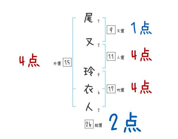 尾又玲衣人さんの画数の鑑定結果