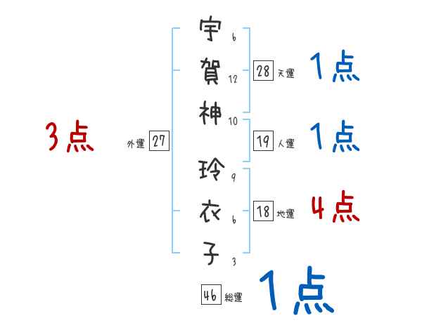 宇賀神玲衣子さんの画数の鑑定結果