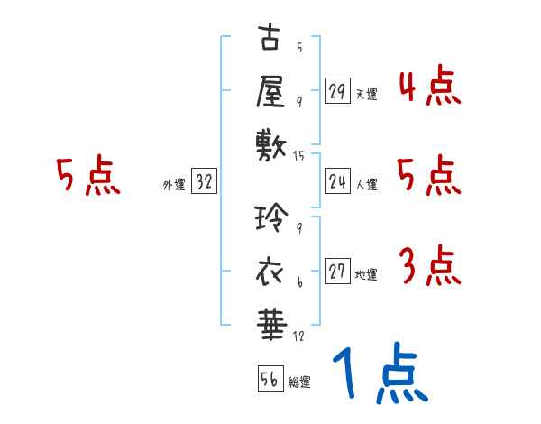 古屋敷玲衣華さんの画数の鑑定結果