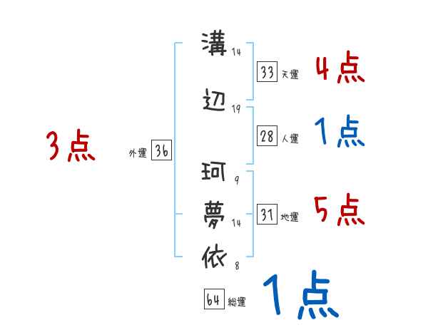 溝辺珂夢依さんの画数の鑑定結果