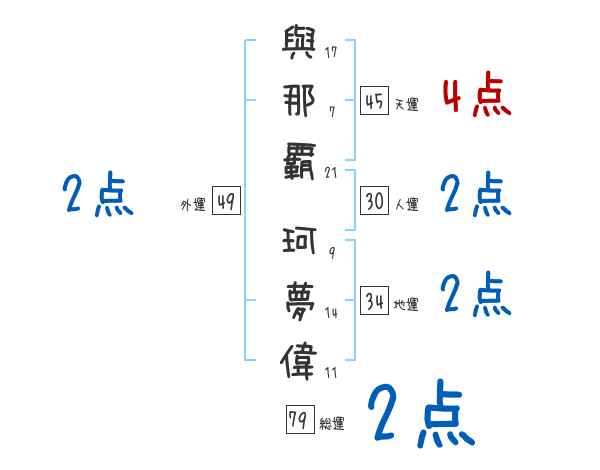 與那覇珂夢偉さんの画数の鑑定結果