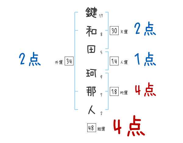 鍵和田珂那人さんの画数の鑑定結果