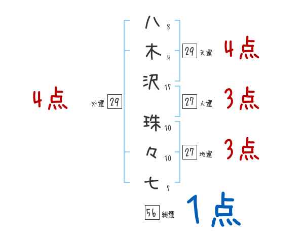 家系が持つ宿命的な運勢を表します。祖先から受け継いだ苗字ですので自分の力が及びません。家柄を象徴します。