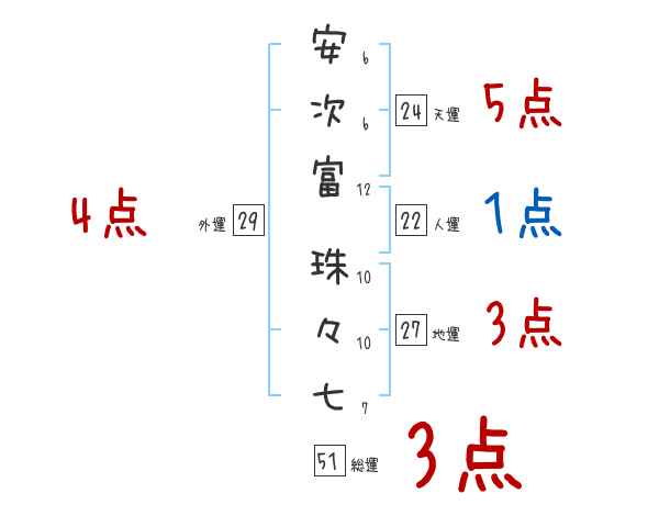 安次富珠々七さんの画数の鑑定結果