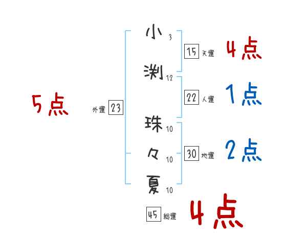 天運![]() | 小渕珠々夏さんの天運は15画の4つ星!人徳があり出世する。順調に物事を進め円満な人生。 家系が持つ宿命的な運勢を表します。祖先から受け継いだ苗字ですので自分の力が及びません。家柄を象徴します。 |