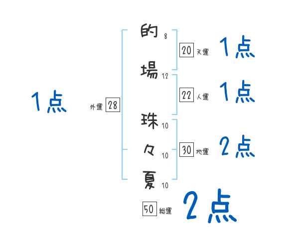 外運![]() | 的場珠々夏さんの外運は28画の1つ星!家庭環境に注意。スポーツで活躍できる能力があるかも。 生活面を象徴する運勢です。外部から受ける影響力を表し、結婚運、家庭運や職場、環境への順応性を表します。 |