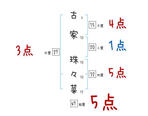 古家珠々菜さんの画数の鑑定結果