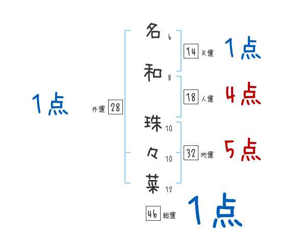 天運![]() | 名和珠々菜さんの天運は14画の1つ星!人に対して優しいがストレスを溜め込みがち。人間関係のトラブルを避けるよう気をつけましょう。 家系が持つ宿命的な運勢を表します。祖先から受け継いだ苗字ですので自分の力が及びません。家柄を象徴します。 |