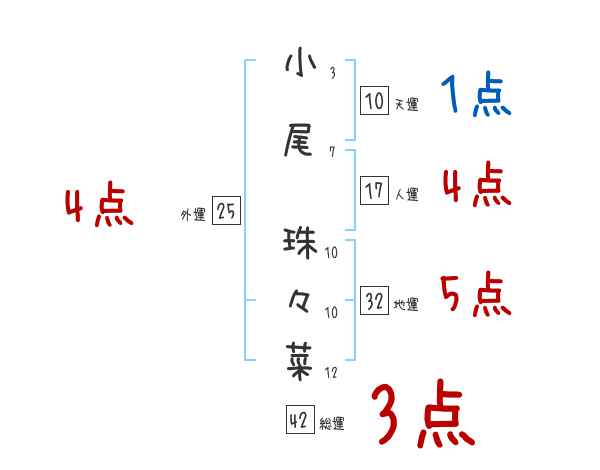 総運![]() | 小尾珠々菜さんの総運は42画の3つ星!病気に注意。多芸であるが消極的でおとなしい。 あなたの人生を表す1番重要な運勢です。生涯を通じて影響する総合運となり、主に50歳以降の晩年期に影響を及ぼします。 |