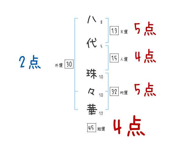 天運![]() | 八代珠々華さんの天運は13画の5つ星!才能に恵まれ人気がある。名声を手に入れる。円満な人生。 家系が持つ宿命的な運勢を表します。祖先から受け継いだ苗字ですので自分の力が及びません。家柄を象徴します。 |