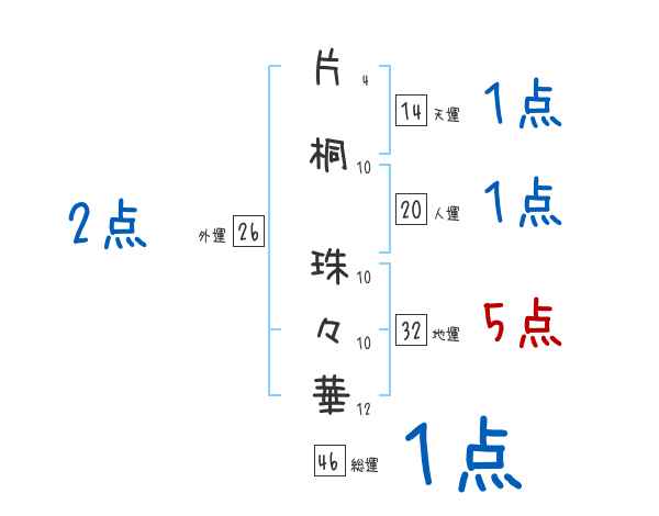 家系が持つ宿命的な運勢を表します。祖先から受け継いだ苗字ですので自分の力が及びません。家柄を象徴します。
