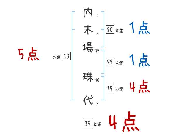 内木場珠代さんの画数の鑑定結果