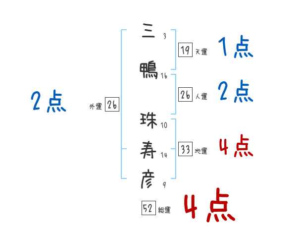 三鴨珠寿彦さんの外運は26画の2つ星
