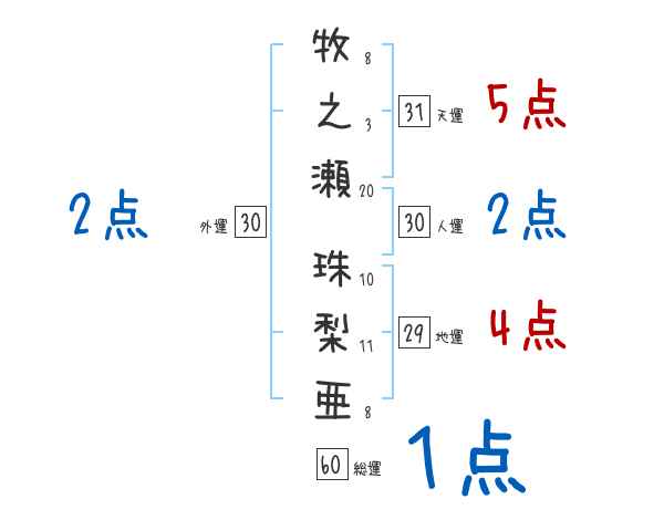 牧之瀬珠梨亜さんの画数の鑑定結果