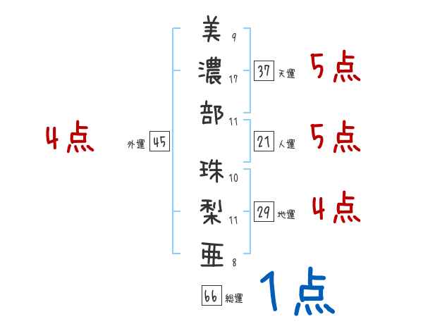 美濃部珠梨亜さんの画数の鑑定結果